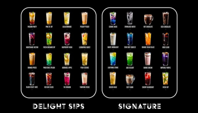 Over 200 drink combinations with adjustable sugar, milk, and ice levels