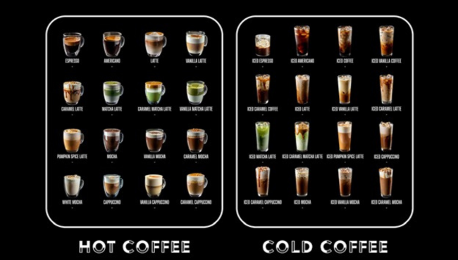 - ☕ Hot & Iced Coffee: Cappuccino, Espresso, Mocha, Flat White, Iced Latte, Cold Brew
